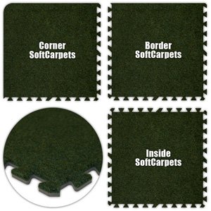 Floor Pad, Softcarpets, Grass Green, 26' x 46' Set, Total Sq. Ft.:1196A perfect combination of durability and comfort for Residential or Commercial or Industrial applications. PP commercial carpet bonded to our closed cell EVA Foam Rubber makes SoftCarpetsLighweight, Portable, Waterproof, Soundproof, Aerobic, Shock Absorbent, Insulating, etc. Components: Corner: 4, Border: 64, Inside: 231 Packaging information: Total Pieces: 299, Total Cartons: 12, Full Cartons (25 pcs): 11, Full Carton Weight (lbs.): 42, Partial Carton (Total Pieces): 24, Partial Carton (Product photo may not exactly match the product offered for sale. Please refer to the product description.